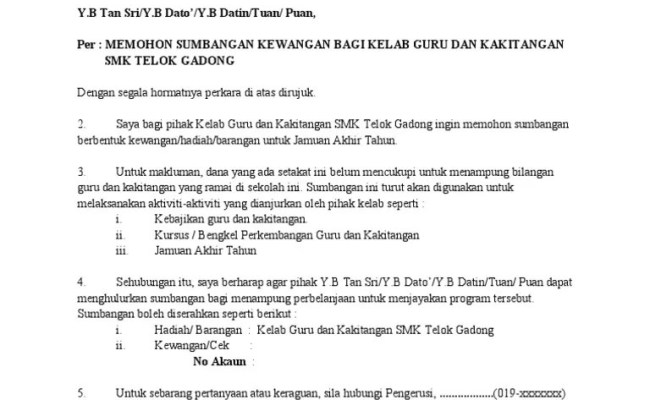 Surat Permohonan Sumbangan Yb from imgv2-2-f.scribdassets.com Surat permohonan sendiri dapat bersifat resmi atau pun tidak resmi. Santri siap guna daarut tauhiid bandung gegerkalong girang no. Pembangunan mesijid tentunya membutuhkan dana yang tidak sedikit. Surat ini juga bias mencantumkan materai jika diperlukan. Selain sumbangan dari masyarakat panitia pembangunan mesjid juga bisa meminta bantuan dari pemerintah daerah. Kumpulan contoh surat permohonan untuk kerjasama, rekomendasi, bantuan dana, permohonan maaf, beasiswa atau keperluan yang lain dengan penulisan yang baik dan benar. Untuk mengajukan permohonan dana kepada masyarakat, pemerintah, instansi resmi surat permohonan ini tersebut harus ditanda tangani secara resmi oleh pihak terkait yang menjadi penanggung jawab. Berikut contoh surat permohonan dana kegiatan hut ri untuk meminta bantuan dana pada masyarakat jika kita sudah mempunyai surat permohonan dana tersebut tentunya masyarakat akan percaya dan akan dengan sadar hati memberikan bantuan dana.