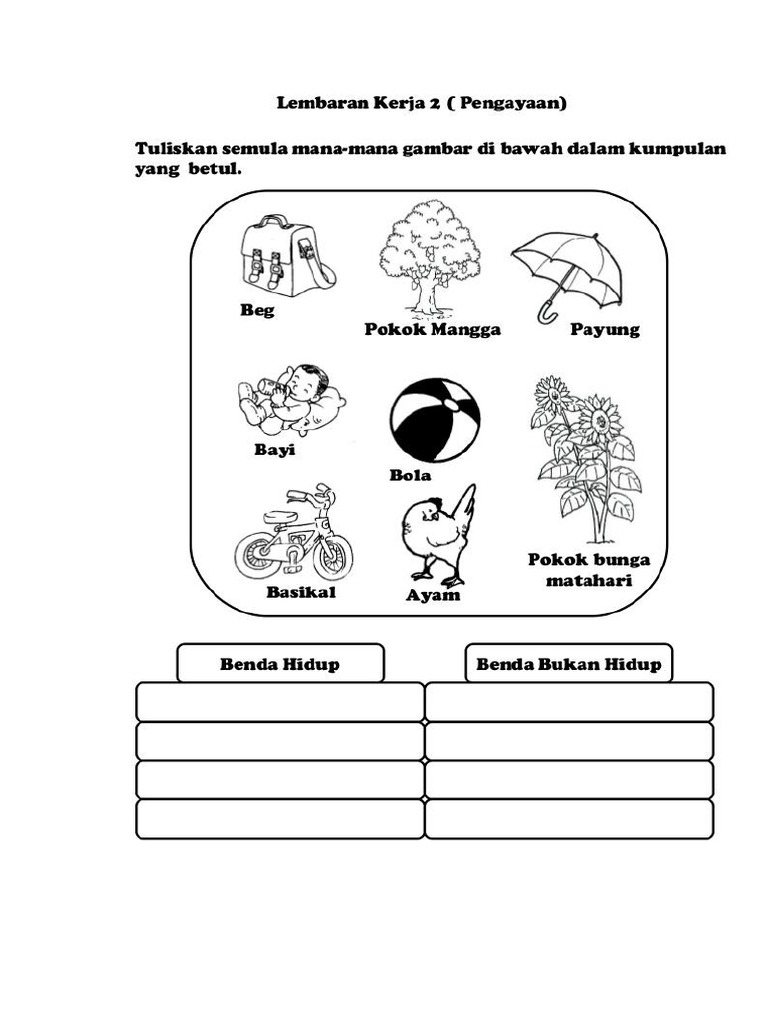Related : Benda Hidup Dan Benda Bukan Hidup - Ejercicio De Keperluan Benda Hidup : Benda hidup dan bukan hidup sortare în funcție de grup..